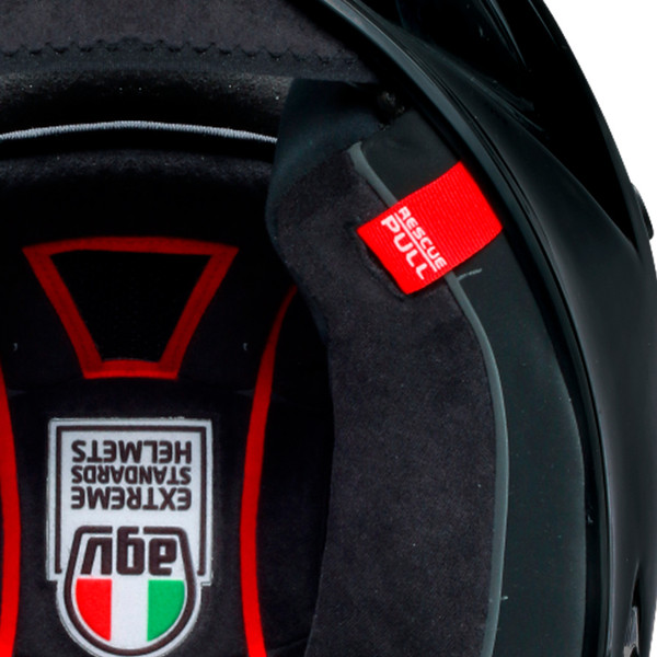Die Wangenpolster sind mit einem patentierten Notfall-Lösesystem ausgestattet, um sie im Notfall entfernen zu können. Riemen an der Unterseite des Helmes ermöglichen bei Bedarf eine leichte Entfernung, verhindern jedoch unbeabsichtigte Ablösungen und fügen kein Gewicht hinzu.